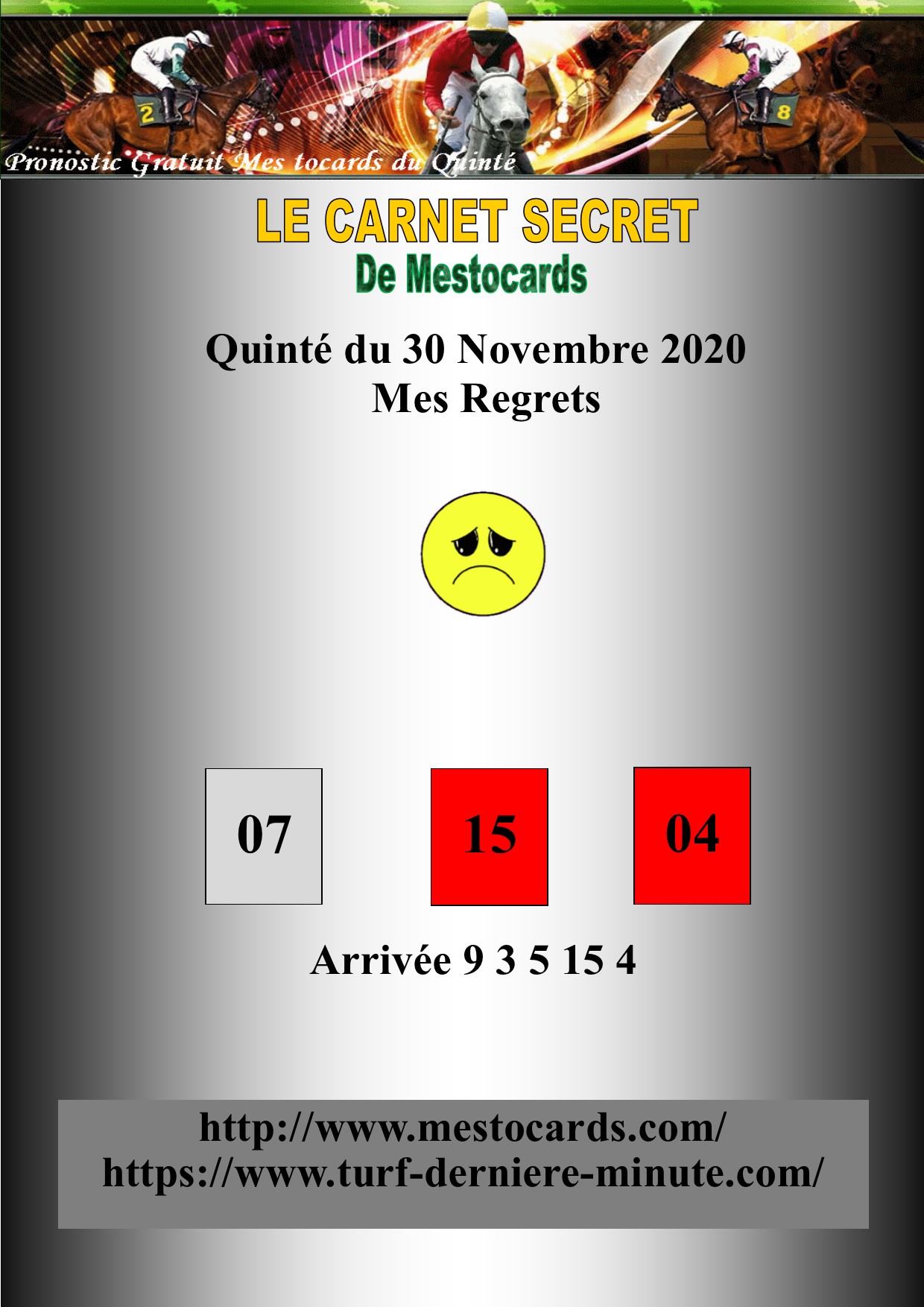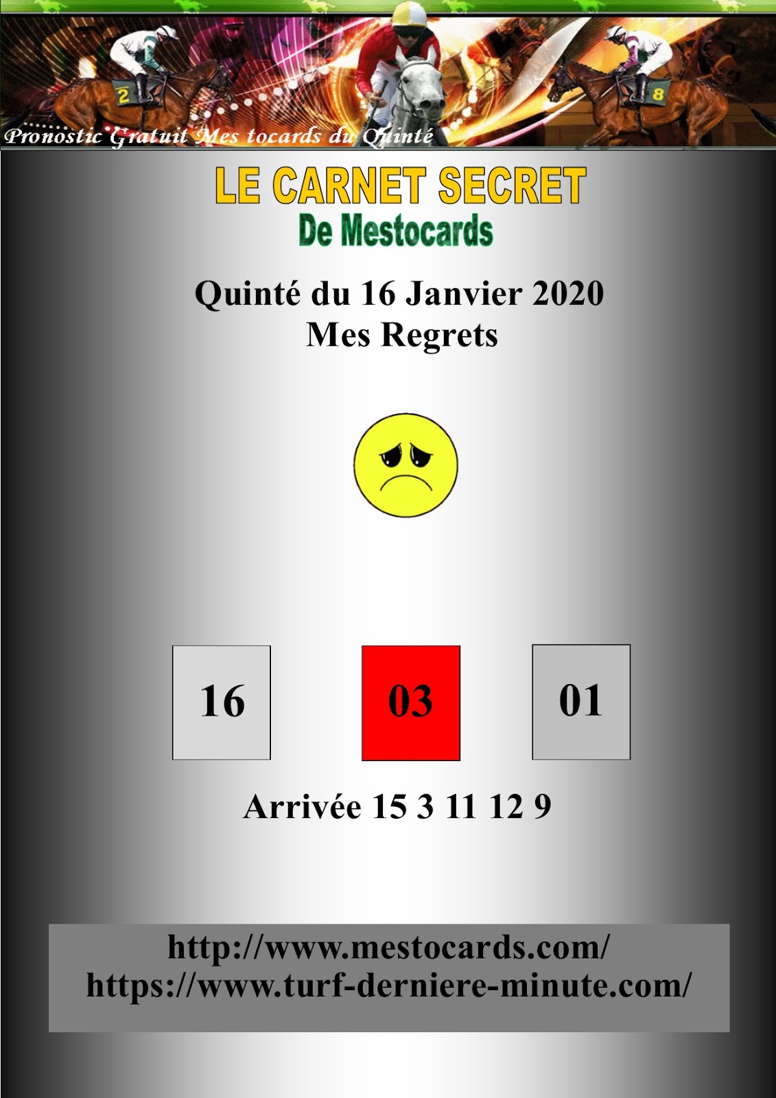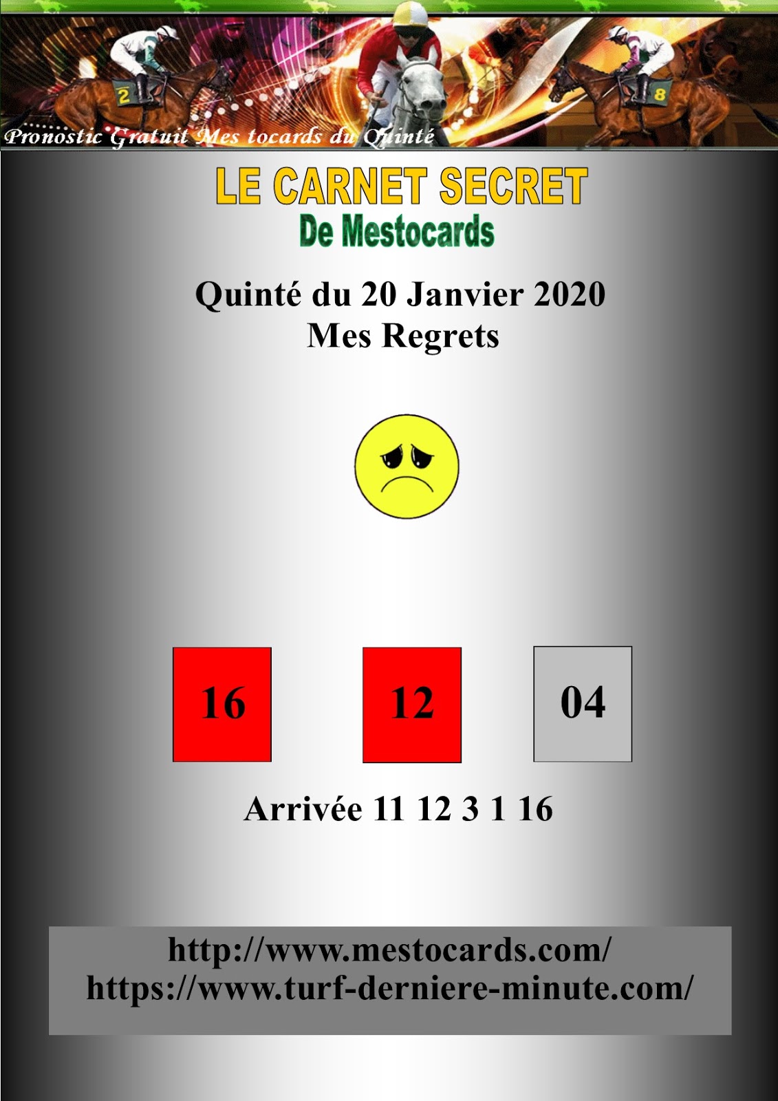 | Les Tocards du jour blog entièrement gratuit qui a pour but de rechercher des chevaux qui ne sont pas des favoris de la presse hippique et qui sont susceptible de créer la surprise a grosse cote dans le Tiercé Quarté Quinté |